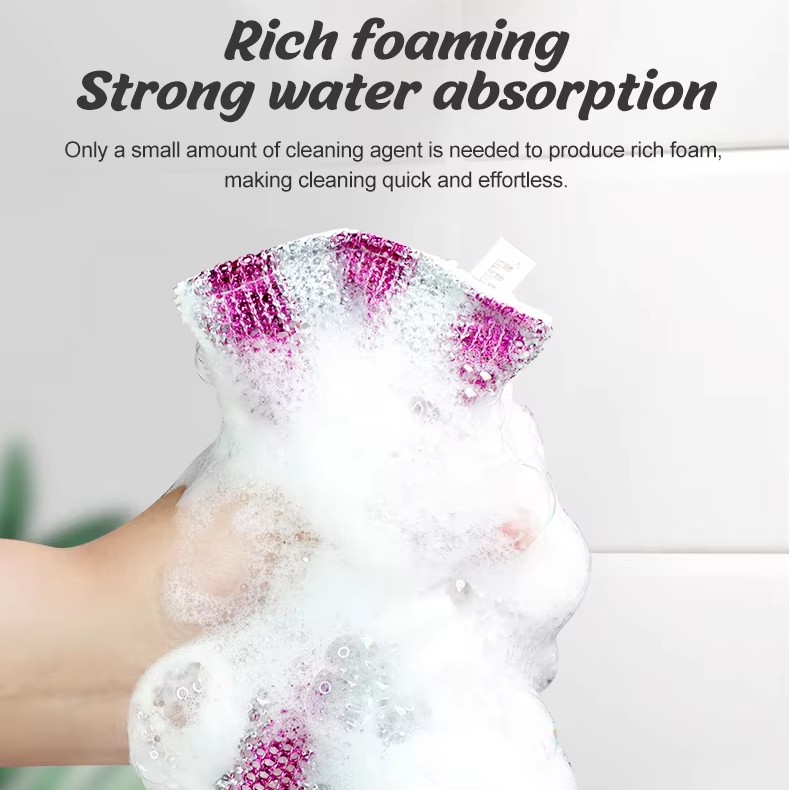다채로운 접시 세척 스폰지 수색 패드는 단단한 얼룩을 제거하는 강력한 청소 도구로 알려져 있습니다. 녹슬지 않고 탄력이 있어 사용하기 적합하며 주방에서 주철 냄비와 프라이팬, 브로일러, 난로 버너의 탄 찌꺼기 청소에 도움이 됩니다. 수저나 식기류를 더 잘 사용하려면 스폰지 면을 사용할 수도 있습니다. 이 다용도 양면 스펀지 수색 패드 청소에는 양면 스펀지와 수색이 함께 제공되어 청소 요구에 맞는 편안함과 더 나은 성능을 제공합니다.